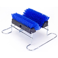 Fabricado con una base metálica que puede fijar al piso, cuenta con dos cepillos fabricados en polietileno duro, ideal para cualquier industria que lo requiera.
